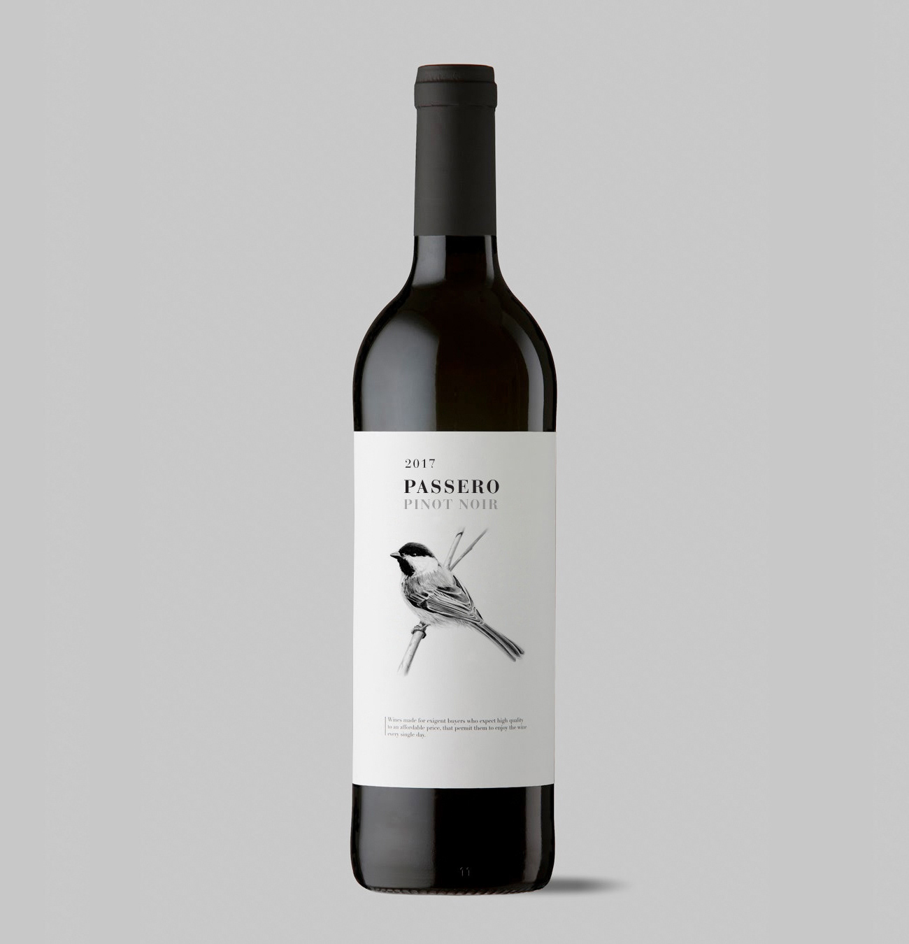 Passero is a delicate and fruity Pinot Noir produced in the beautiful Central Otago wine growing area of New Zealand. The winery wanted a label designed to communicate the name and qualities of the wine but also give it a contemporary and beautiful look and feel. The brief was to include an illustration on the bottle to differentiate it from the large number of wines with typographic label design on the market.